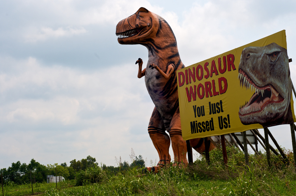Guys… I drove past an 80 ft tall dinosaur and I had no idea I was going the wrong way!  I had never felt so stupid in my life… I was an hour and a half in the wrong direction! We had to cut across gravel roads in the middle of Nowhere, Kentucky, for like two hours just to get across to the highway we were supposed to get on.