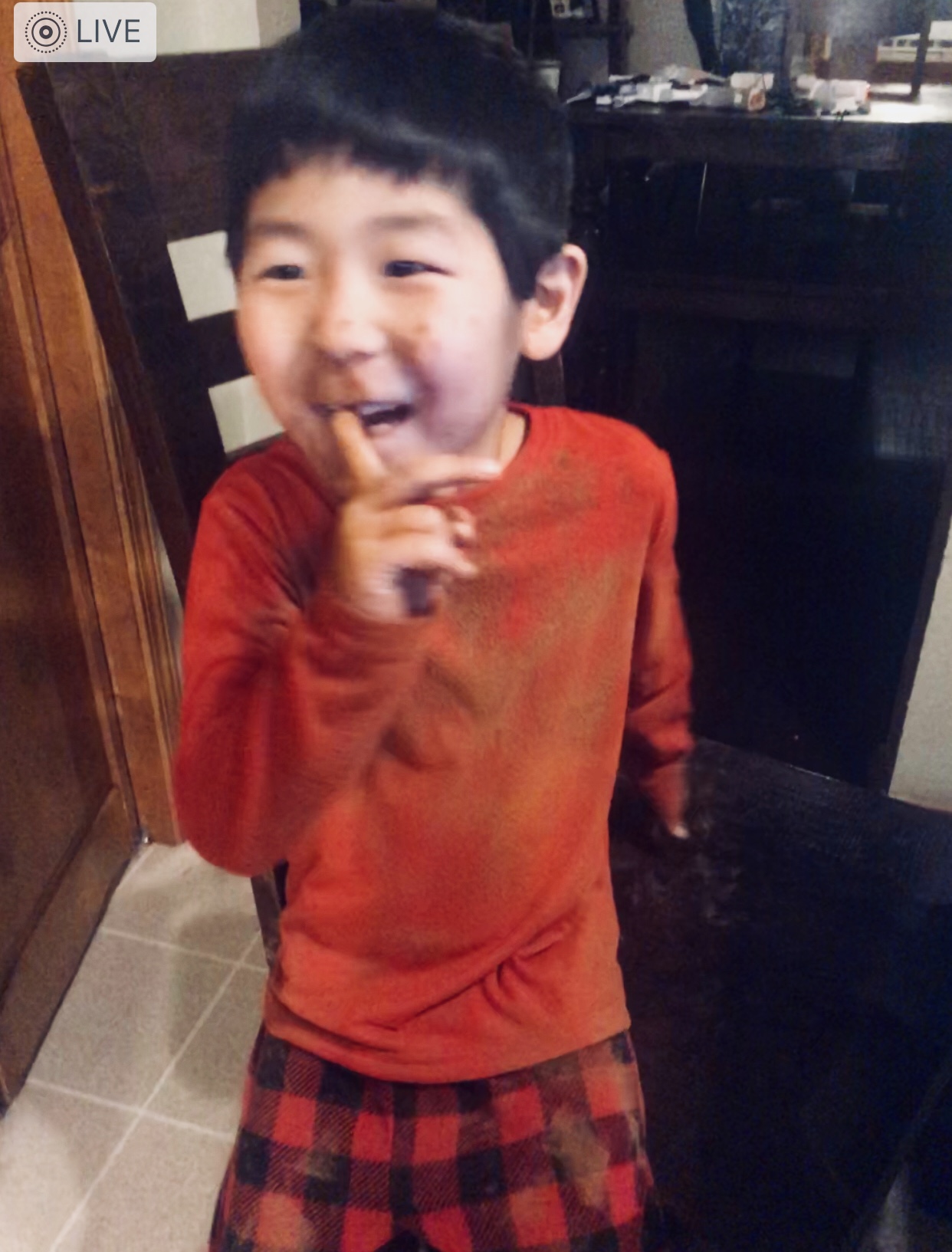 Tobin is sitting at the table cracking up, his belly-chuckle so loud and hard, cocoa all down his pajamas.
